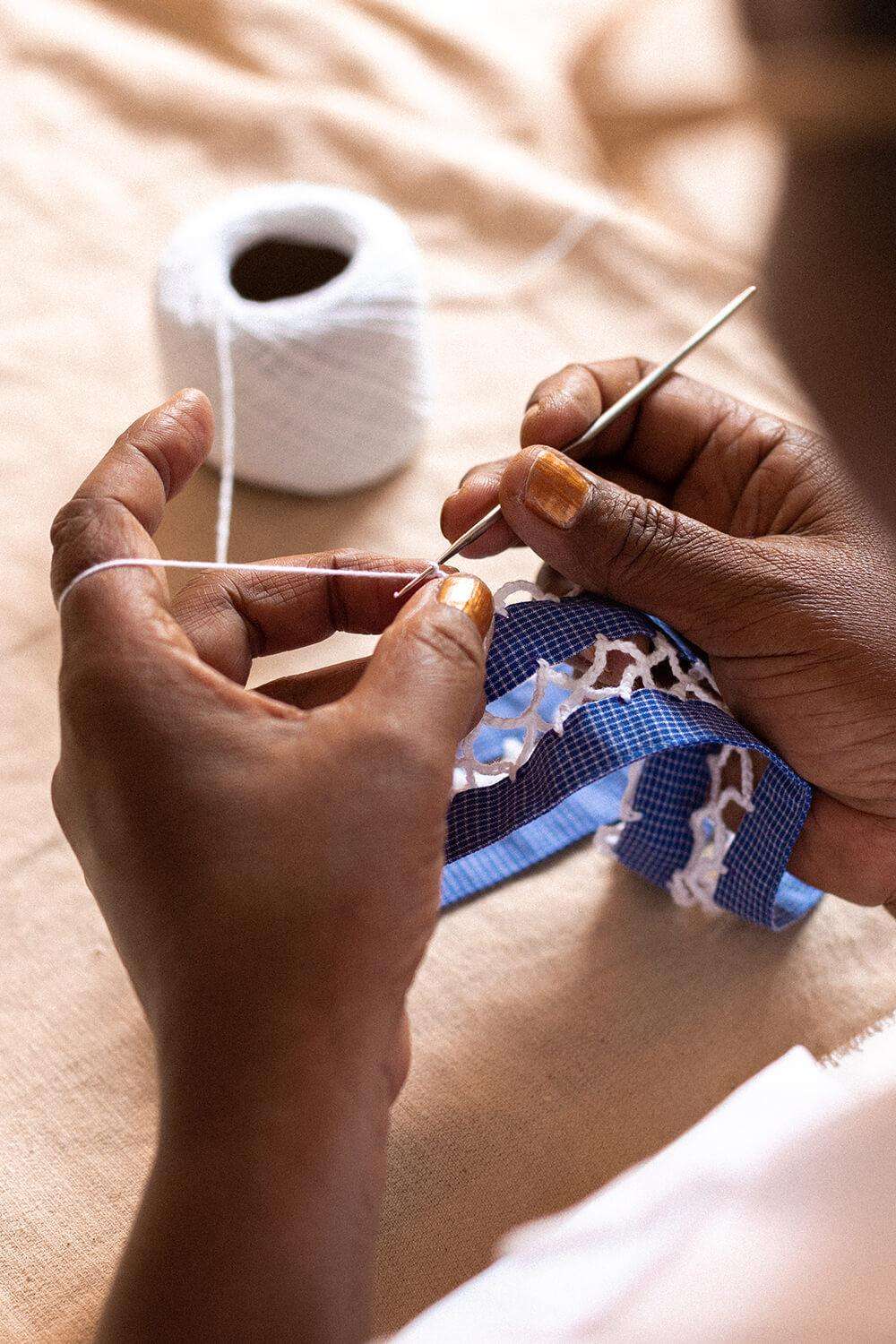 À travers l’upcycling et l’artisanat, Seconde Main transforme les matières oubliées en pièces uniques, façonnées pour durer. Chaque année, des tonnes de vêtements de friperie affluent à Madagascar, pendant que les usines locales rejettent des chutes inexploitées, souvent brûlées. Ce trop-plein devient un symptôme d’un système à bout de souffle. Pourtant, Madagascar regorge de savoir-faire textile d’exception : couture, broderie, crochet, tissage. Un artisanat précis, raffiné, encore trop peu reconnu. C’est de cette tension, nourrie à la fois par l’amour du geste et le refus des schémas établis, qu’est née Seconde Main.