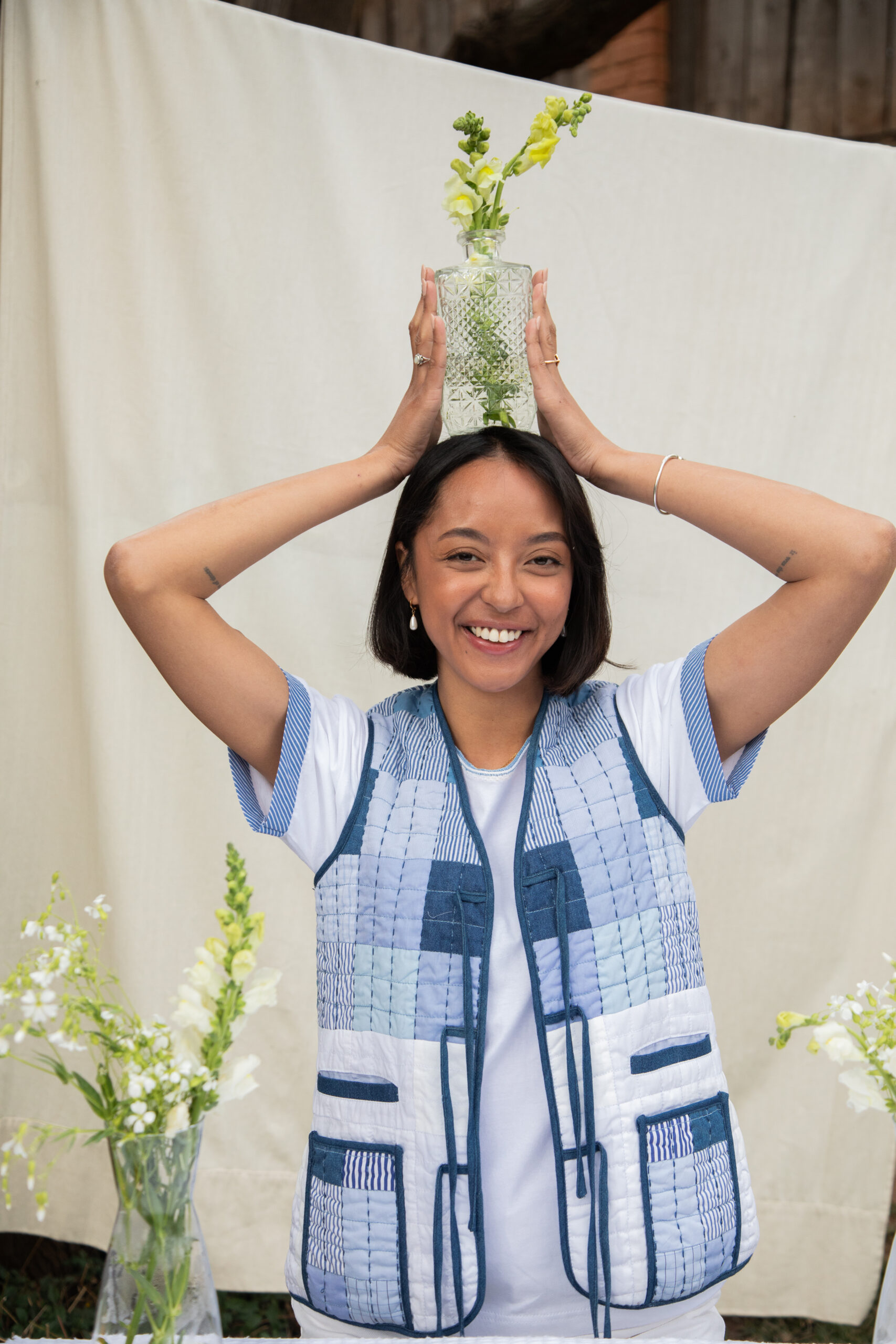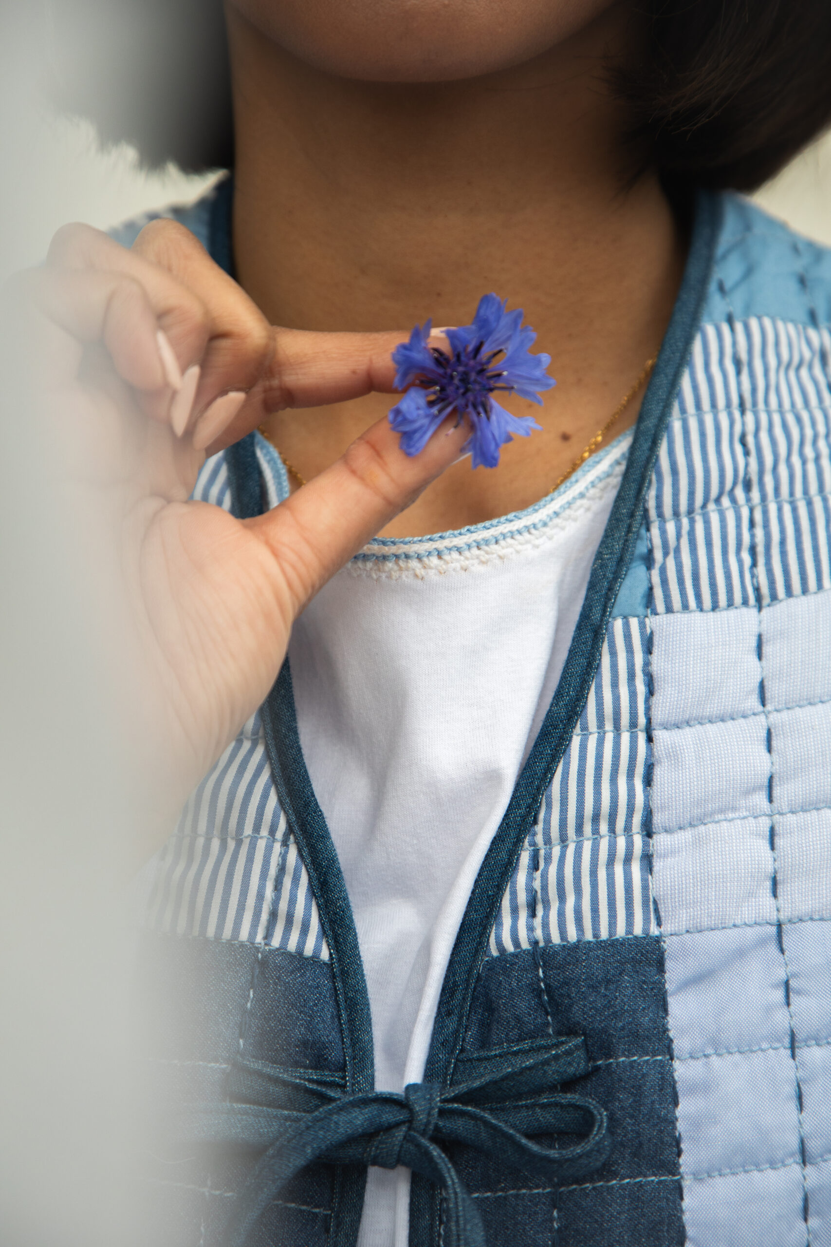 Le gilet Tiana est la pièce iconique de la collection, incarnant une tendance intemporelle. Nous l’avons réinterprété avec notre touche unique : des patchworks colorés, des poches emblématiques de la marque et une doublure en chute.