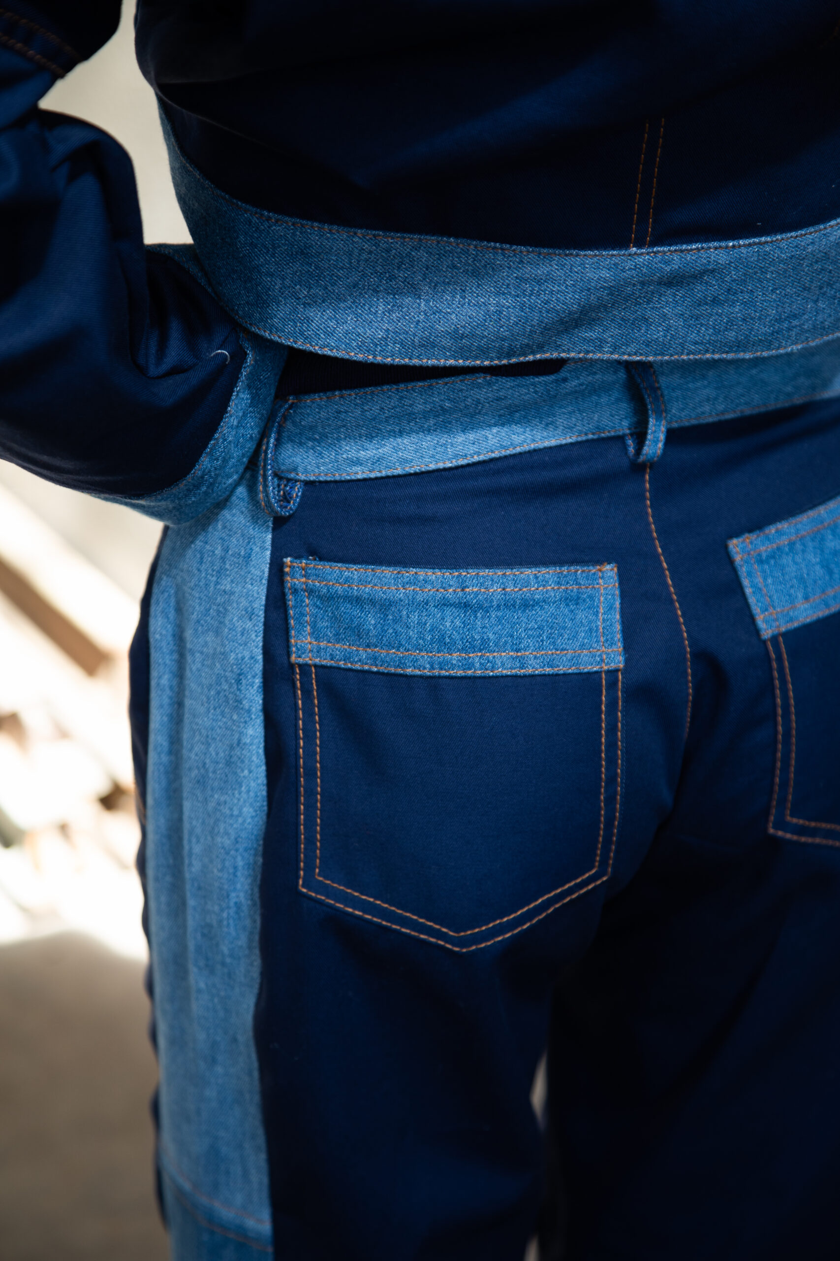 – Tissu de travail en sergé de polyester/coton, récupéré des chutes de production d’une usine partenaire