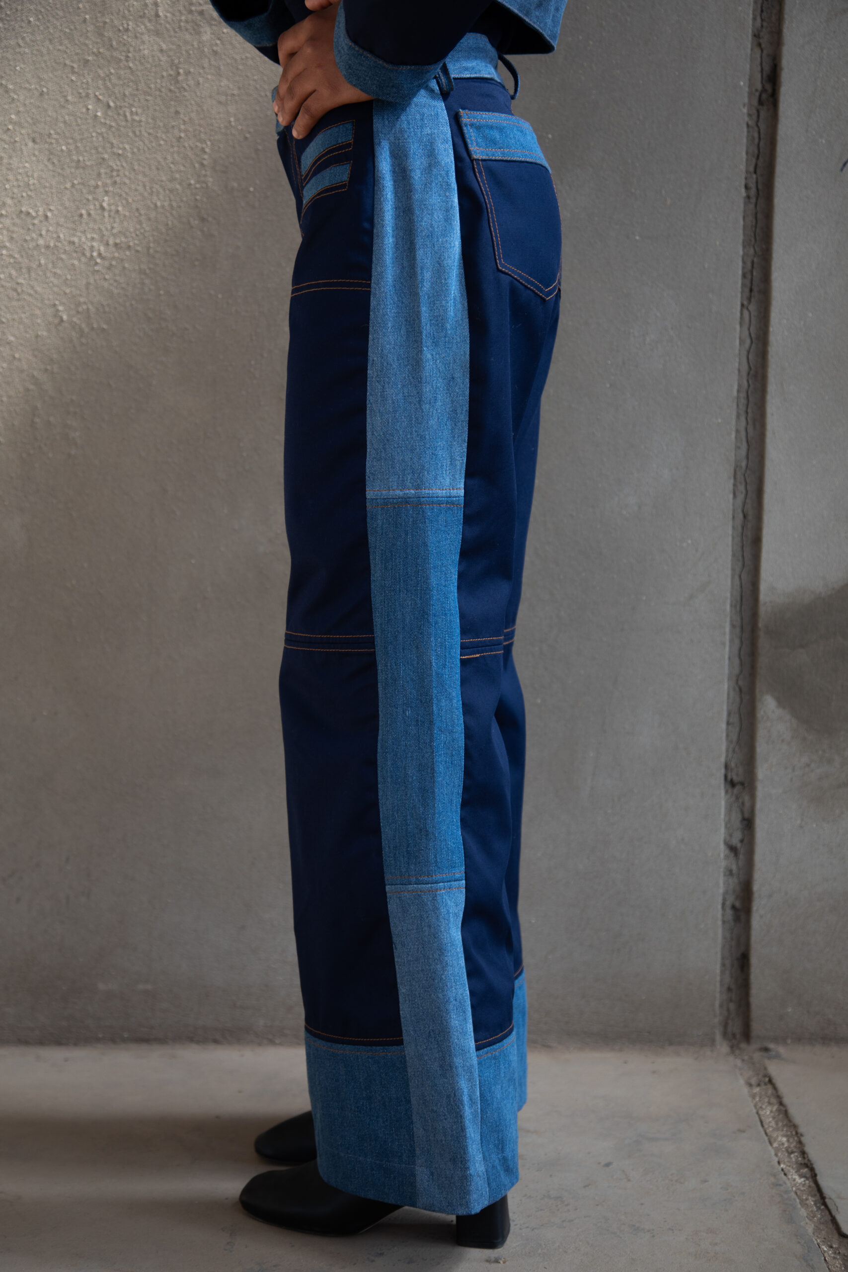 Le pantalon FALY est un pantalon flair bi-matière avec détails travaillés et empiècements sur les côtés.