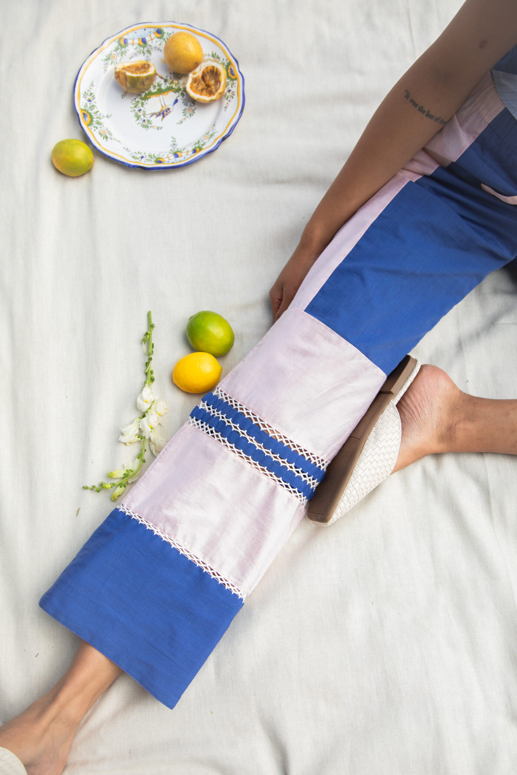 Le pantalon Hanitra en coton est élastiqué à la taille et vient s’ajuster parfaitement aux hanches grâce à son lacet à nouer. Composé de patchworks , il séduit par l’originalité de ses bas de jambes ajourés en crochet fait-main.