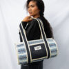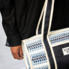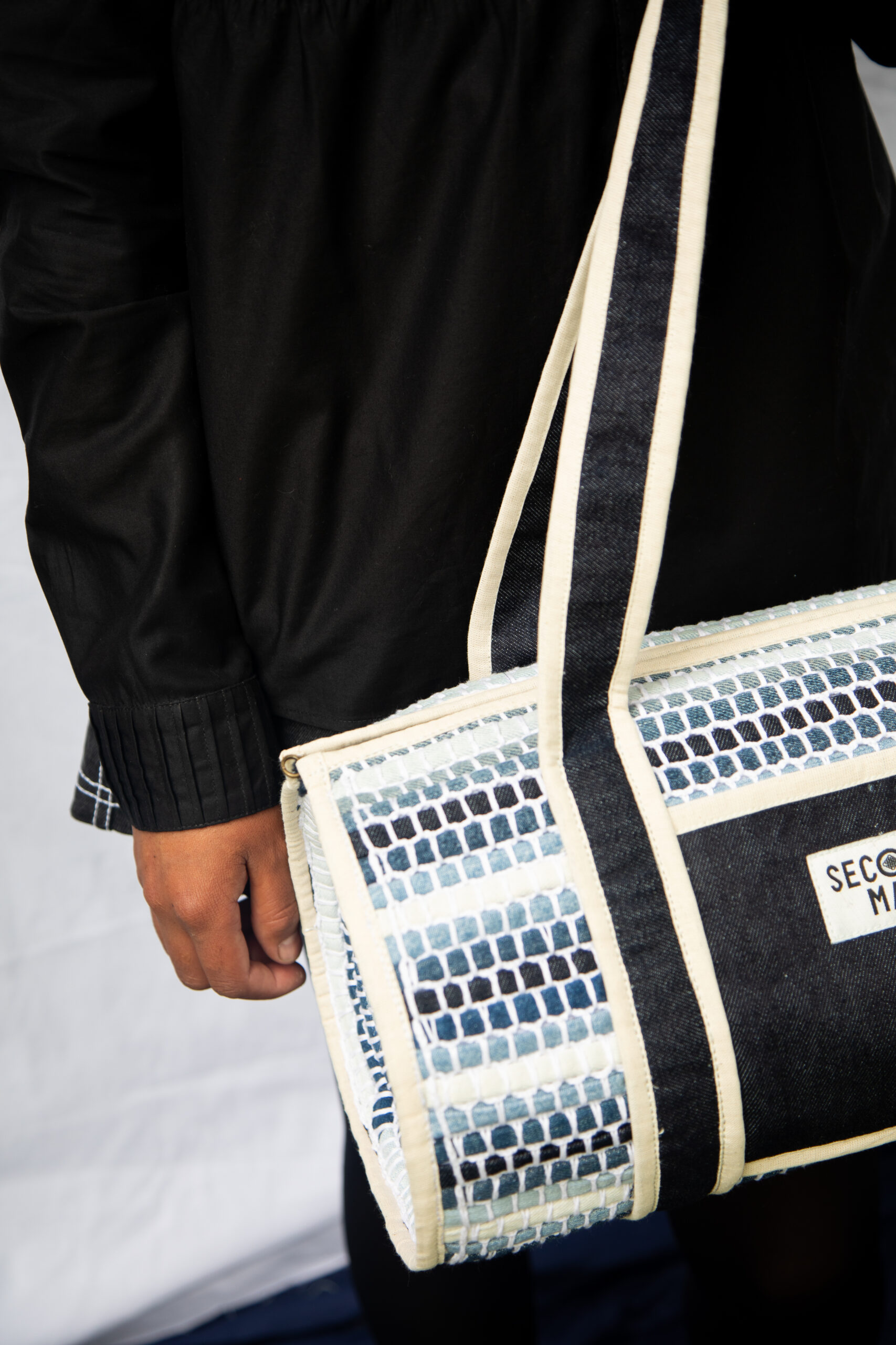 Le sac Dihy de Seconde Main est un petit sac de voyage en denim entièrement crocheté à la main. Ce sont nos chutes de production de vêtements qui sont découpées puis cousues en lacets.